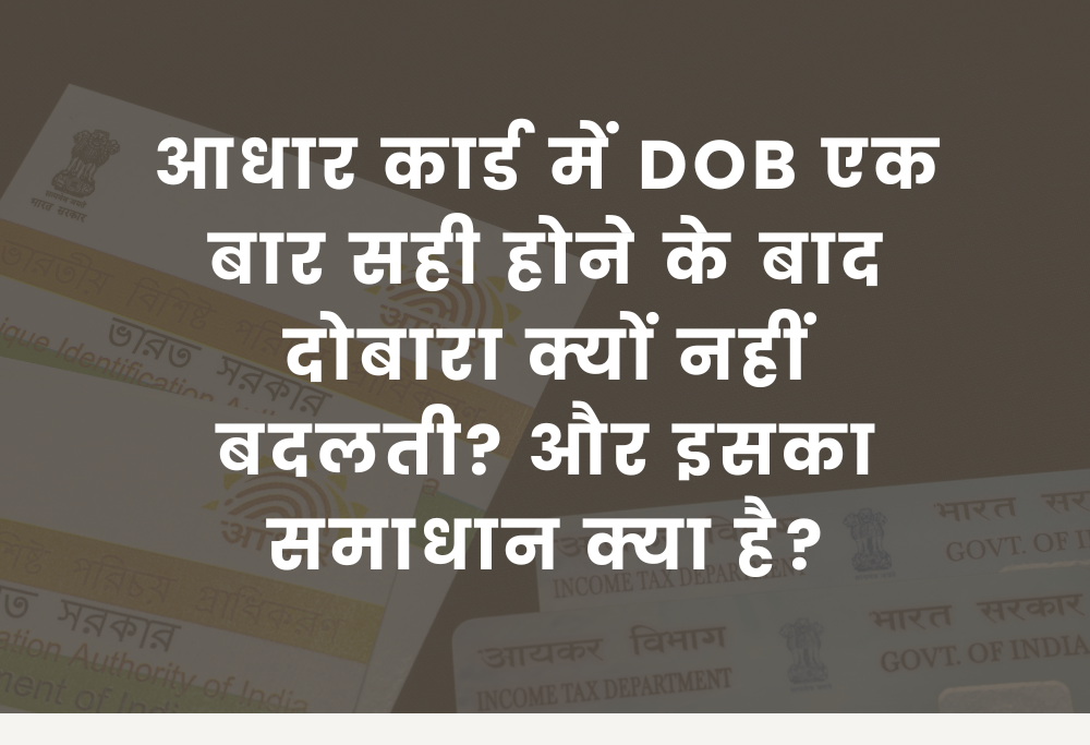 आधार कार्ड हर सरकारी और गैर-सरकारी काम की सबसे जरूरी पहचान बन चुका है। बैंक अकाउंट, सरकारी योजनाएँ, पैन कार्ड, स्कूल एडमिशन, नौकरी, पासपोर्ट हर जगह आधार की जरूरत पड़ती है। लेकिन पिछले कुछ वर्षों से लाखों लोगों को एक बड़ी समस्या का सामना करना पड़ रहा है और वह है आधार कार्ड में Date of Birth (DOB) गलत होना और उसे दोबारा सही न कर पाना।