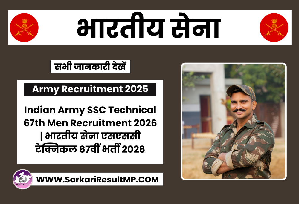 Indian Army SSC Technical 67th Men Recruitment 2026 | भारतीय सेना एसएससी टेक्निकल 67वीं भर्ती 2026