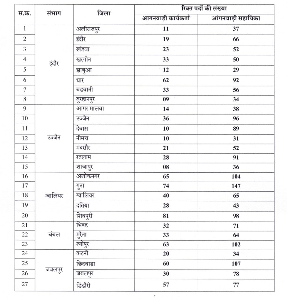 MP Anganwadi Vacancy 2026 – का संक्षिप्त विवरण