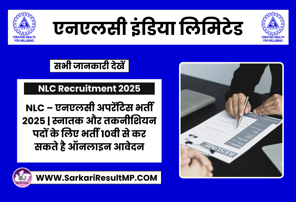 एनएलसी इंडिया लिमिटेड (NLC) की तरफ से जारी होने वाले अधिसूचना पत्र नंबर L&DC/04A/2025 के माध्यम से अपरेंटिस के रिक्त पदों की पूर्ति करने के लिए भर्ती निकाली है। जिसमे सभी इक्षुक और पात्रता मानदंड को पूरा करने वाले उम्मीदवार अपने ऑनलाइन आवेदन फॉर्म को अंतिम तिथि से पहले तक भर सकते है। और इस भर्ती से जुड़ी सभी जानकारी जैसे आवेदन तारीख, आवेदन शुल्क, योग्यता, आयु एवं वेतनमान आदि जानकारी को नीचे इस पोस्ट के माध्यम से देख सकते है। आप आवेदन करने से पहले अधिसूचना मे दिये गए सभी दिशा निर्देशों को ध्यान से जरूर पढ़ें जिससे की आपको आवेदन करने मे किसी भी तरह की कोई परेशानी न आए।